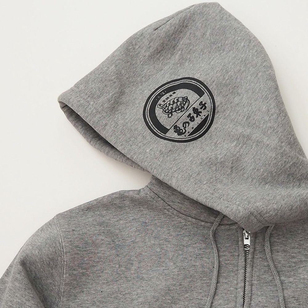 亀マーク刺繍がアクセント。裏起毛ジップパーカー