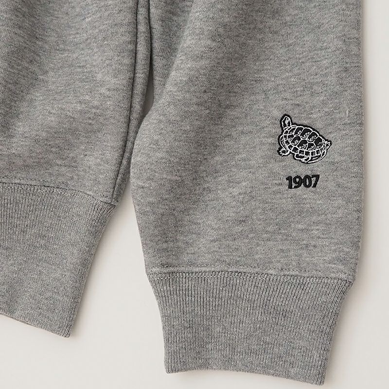 亀マークと創業年の1907を袖口に刺繍したシンプルなデザインのフルジップパーカー。