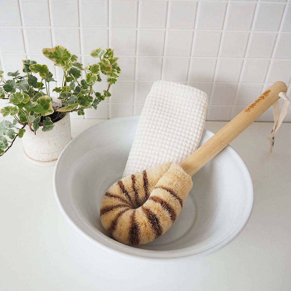 柄付きタイプは、大き目のたわし部分を輪になったデザインにすることで、乾きやすさにもこだわりました。