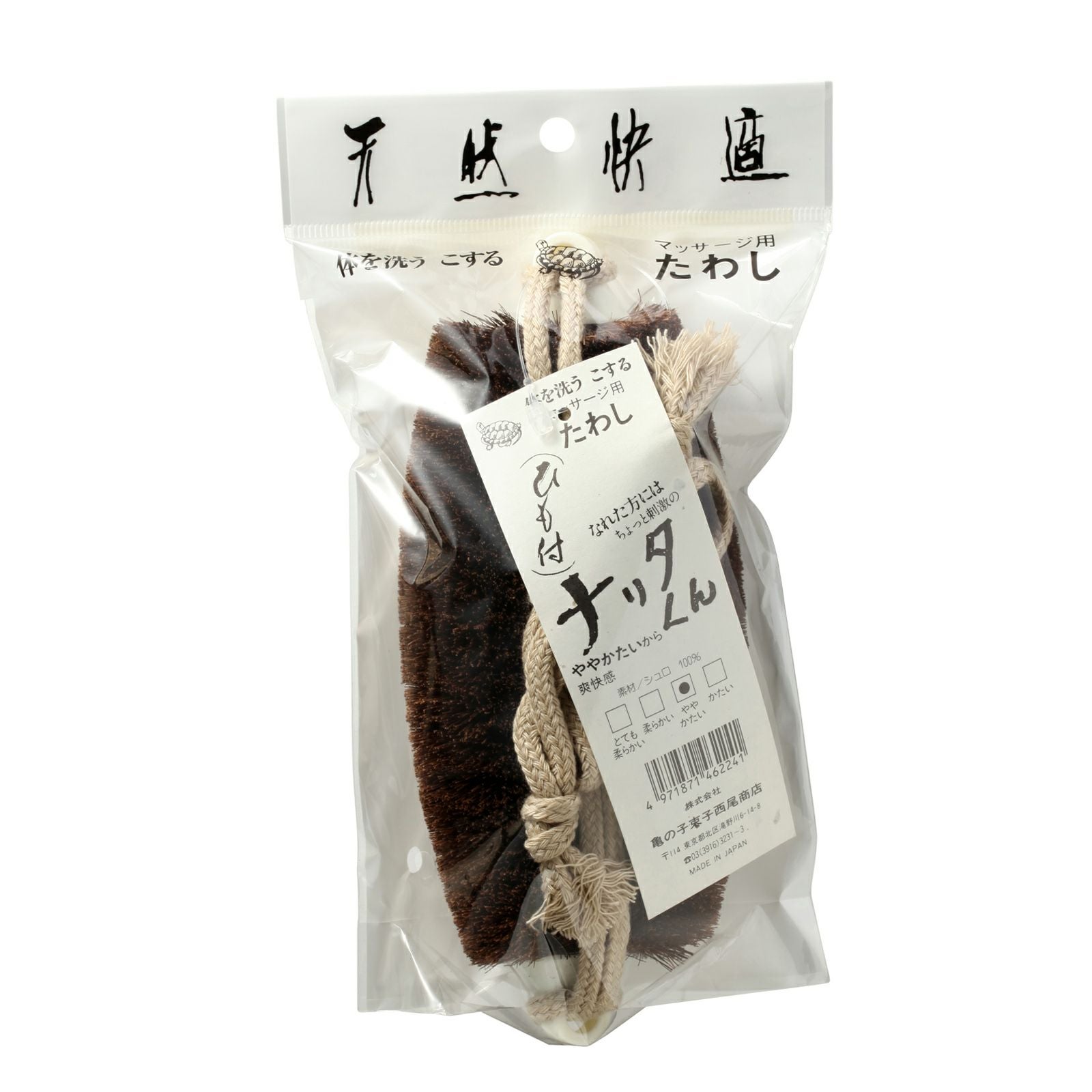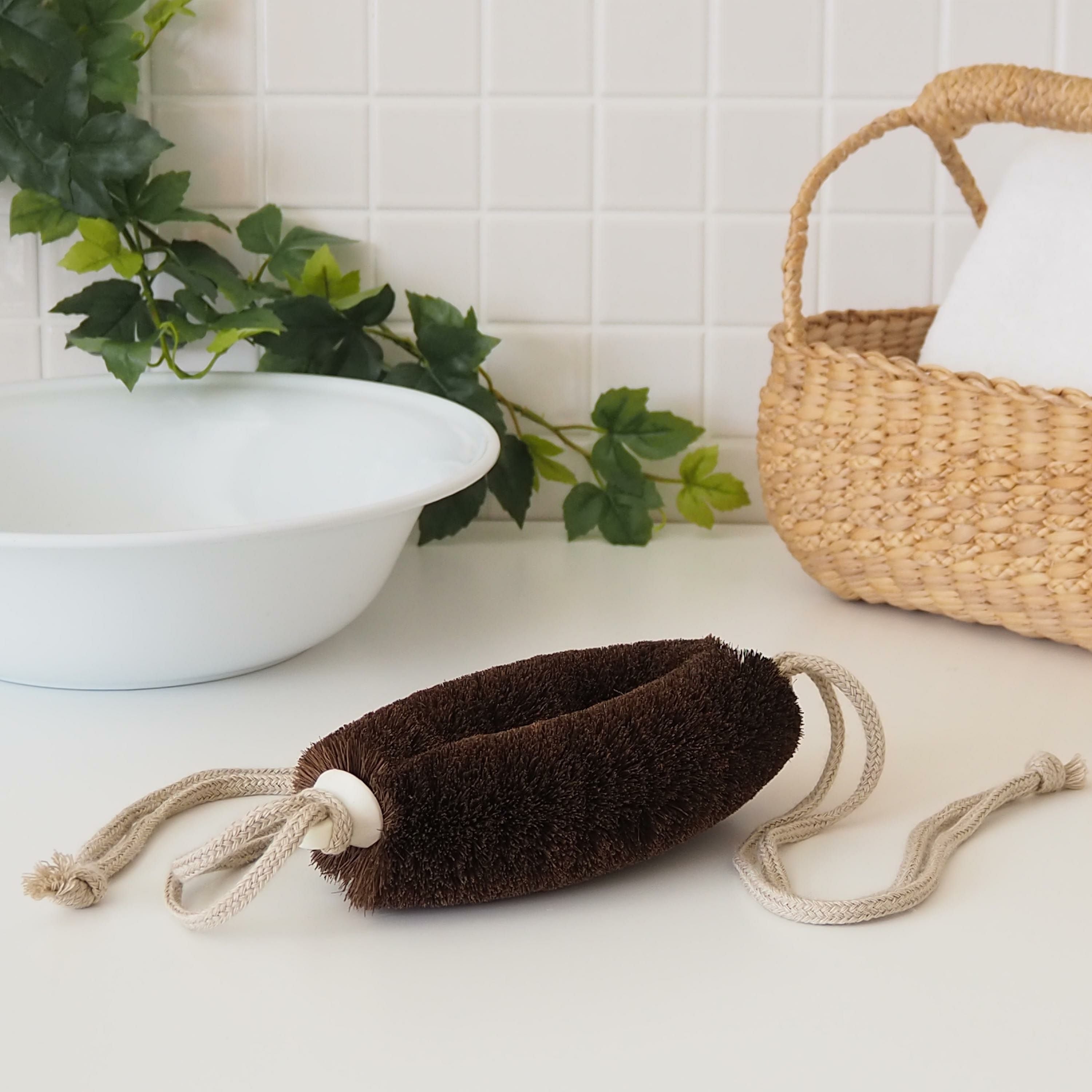 やや大きめのたわしに背中洗いに便利な紐を付けたタイプ。体の固い方はこちらがおすすめです。