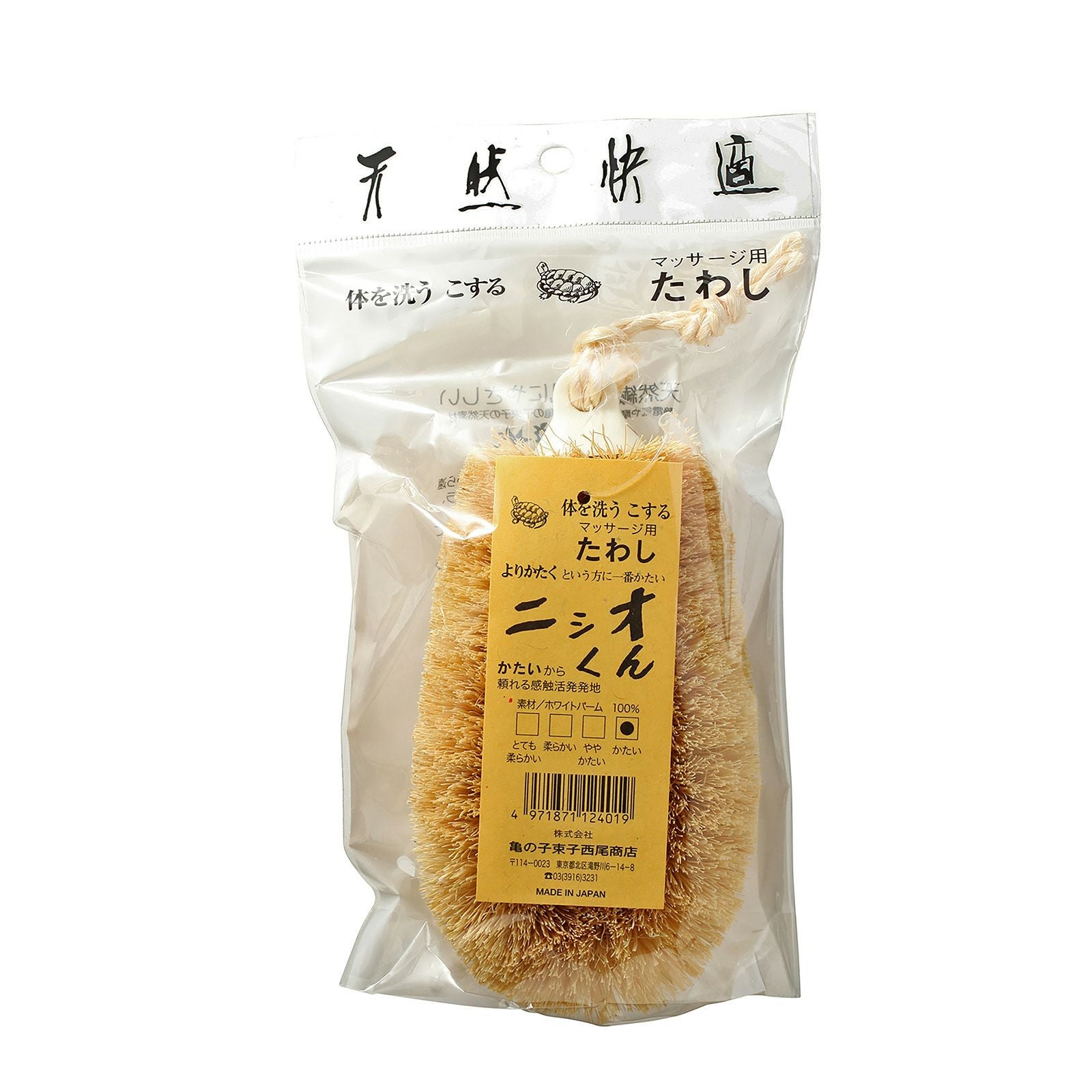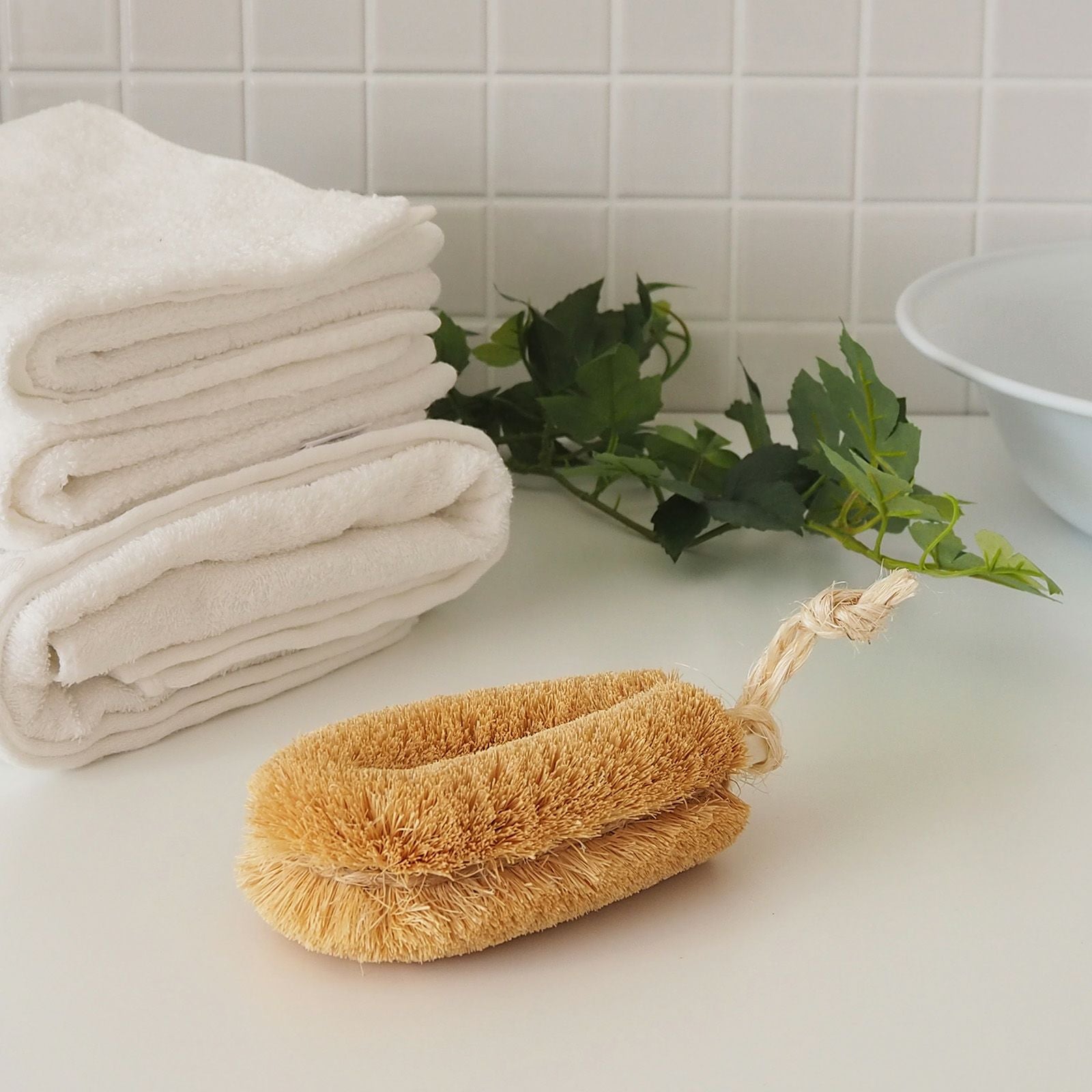 心臓から遠い個所、脚、腕から徐々に身体に慣らしながら使っていくうちに、繊維の先が程よく丸くなり、なんともいえないベストな肌触り自分に合ったかたさにたわしを育ててみるのも楽しみの1つです。