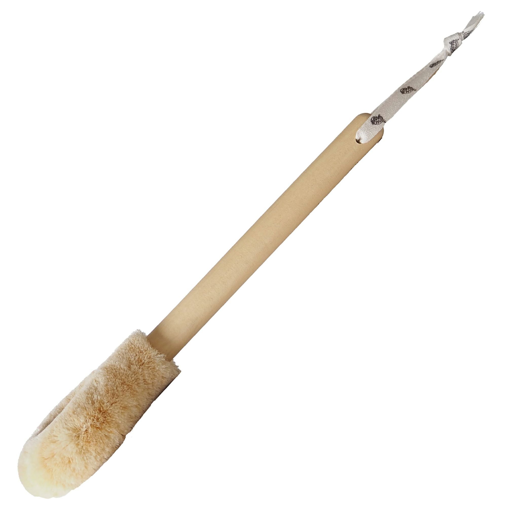 しっかり握れる太さで長すぎない柄の健康たわしは、手の届きにくい背中も楽に洗え、どなたでも快適にお使いいただけます。