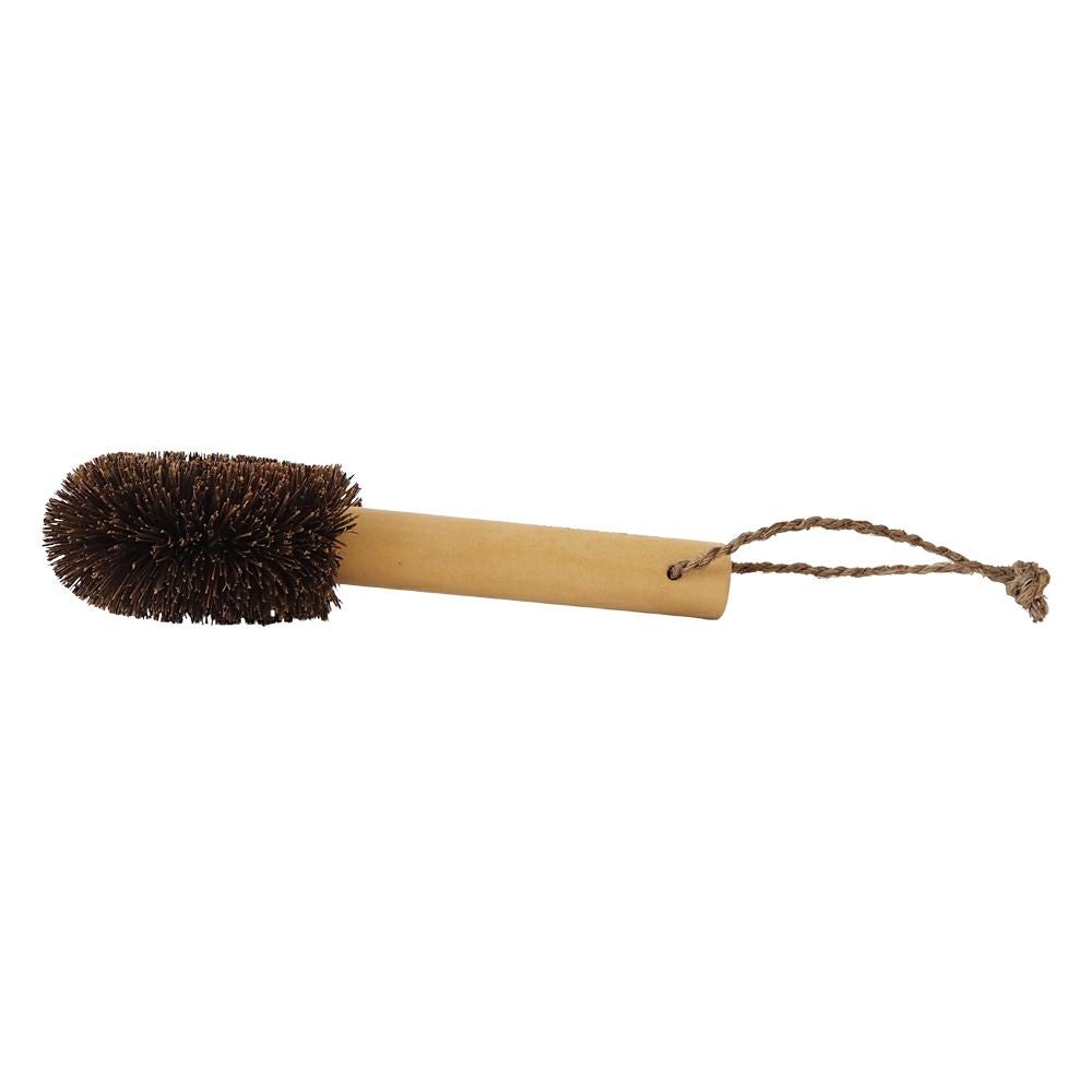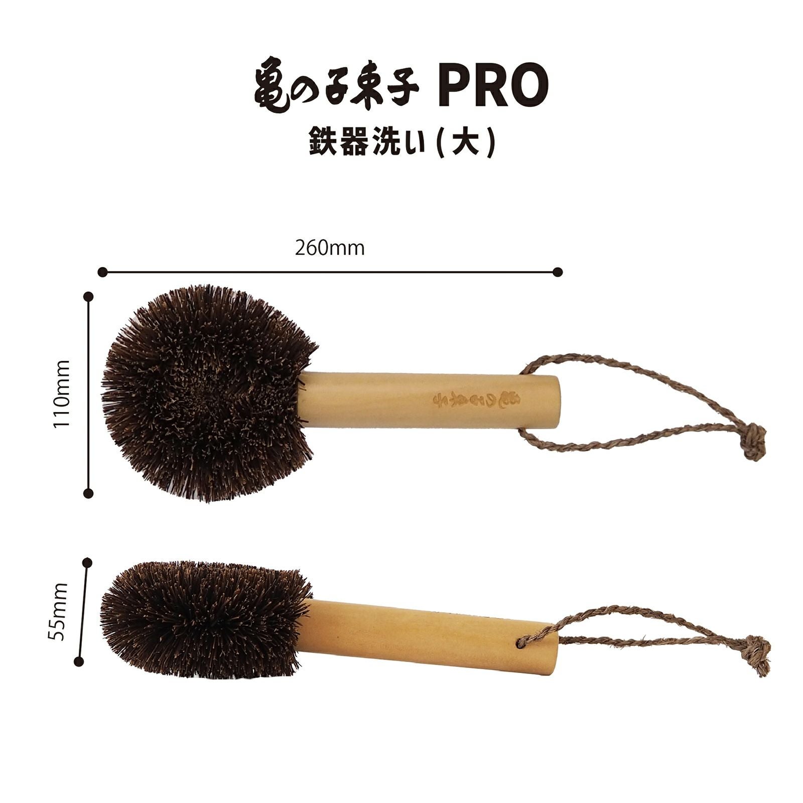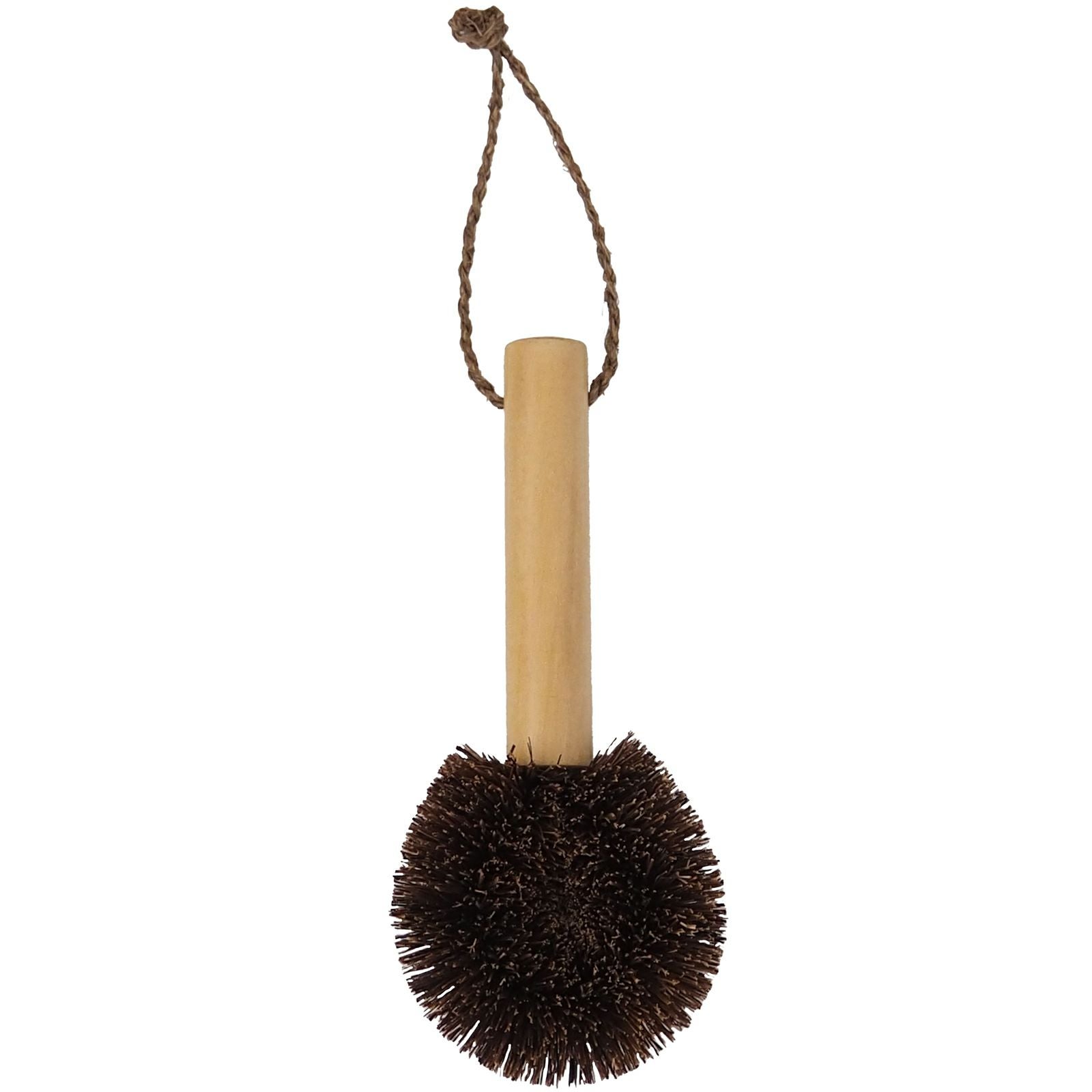 パルミラヤシの葉柄の繊維を使用した柄付きたわし。パルミラヤシの葉柄は繊維が太く硬いため、鉄のフライパン・中華鍋・スキレット・グリル鍋など鉄器に付いた頑固な焦げ付きやこびり付きを落とすことに適しています。