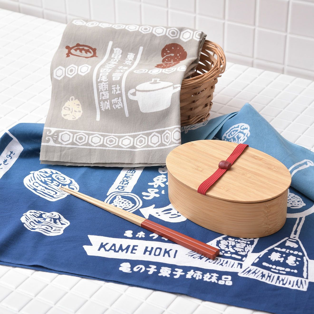 今回も手描きのモチーフを再現するにあたり、図案の再現性と手ぬぐいの完成度にこだわり、1872年創業の老舗「戸田屋商店」さんに作って頂きました。