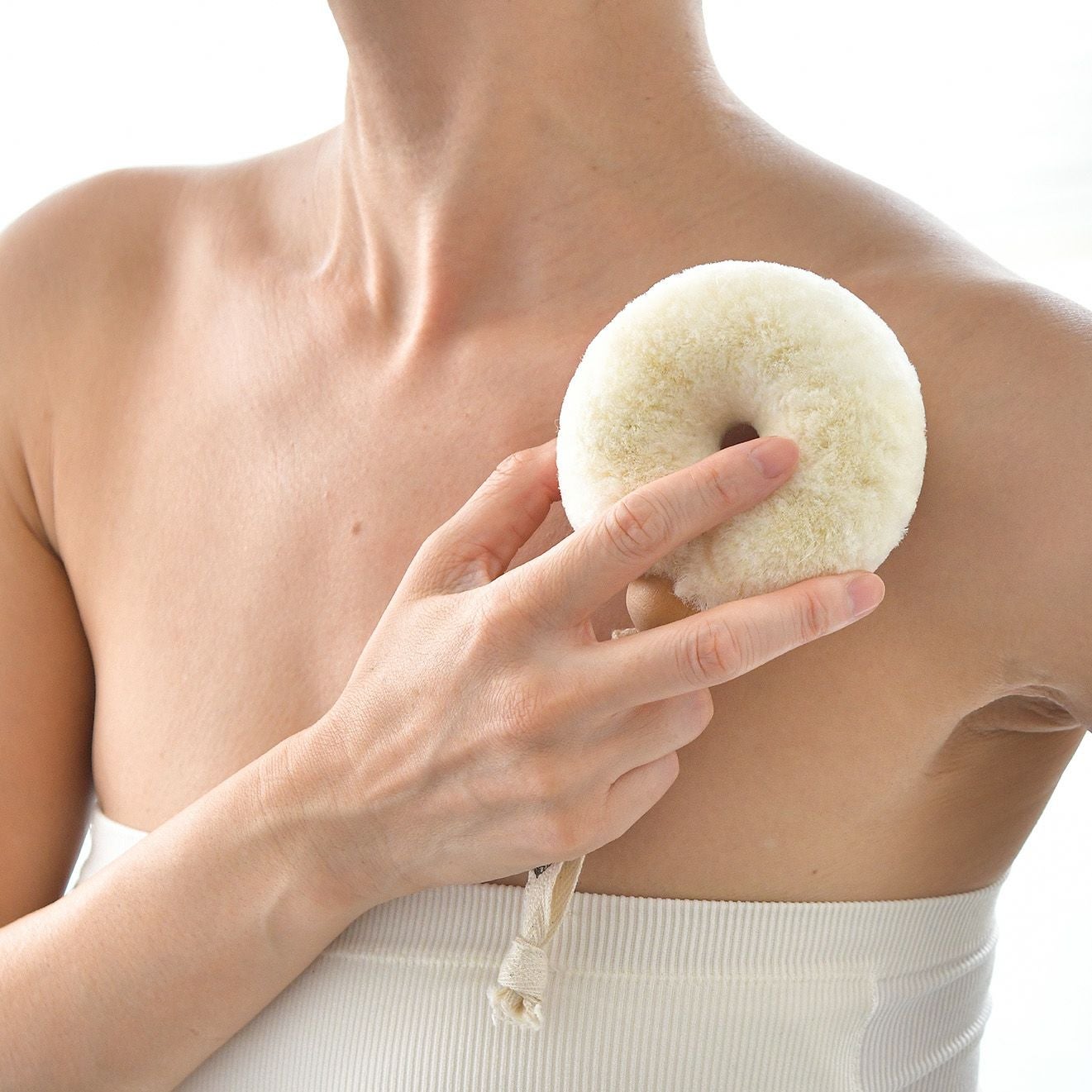 「ボディたわしドライ」として、乾いた肌へのドライブラッシングにおすすめです。 ご使用の際は、水に濡らさずドライの状態でお使いください。 ジュートならではのシャリ感で古い角質にアプローチし、肌の代謝をサポートします。 乾いた状態でのケアは、全身の血行やリンパの流れを促すため、お肌のくすみを払って ハリとツヤのある健やかな素肌へと導きます。