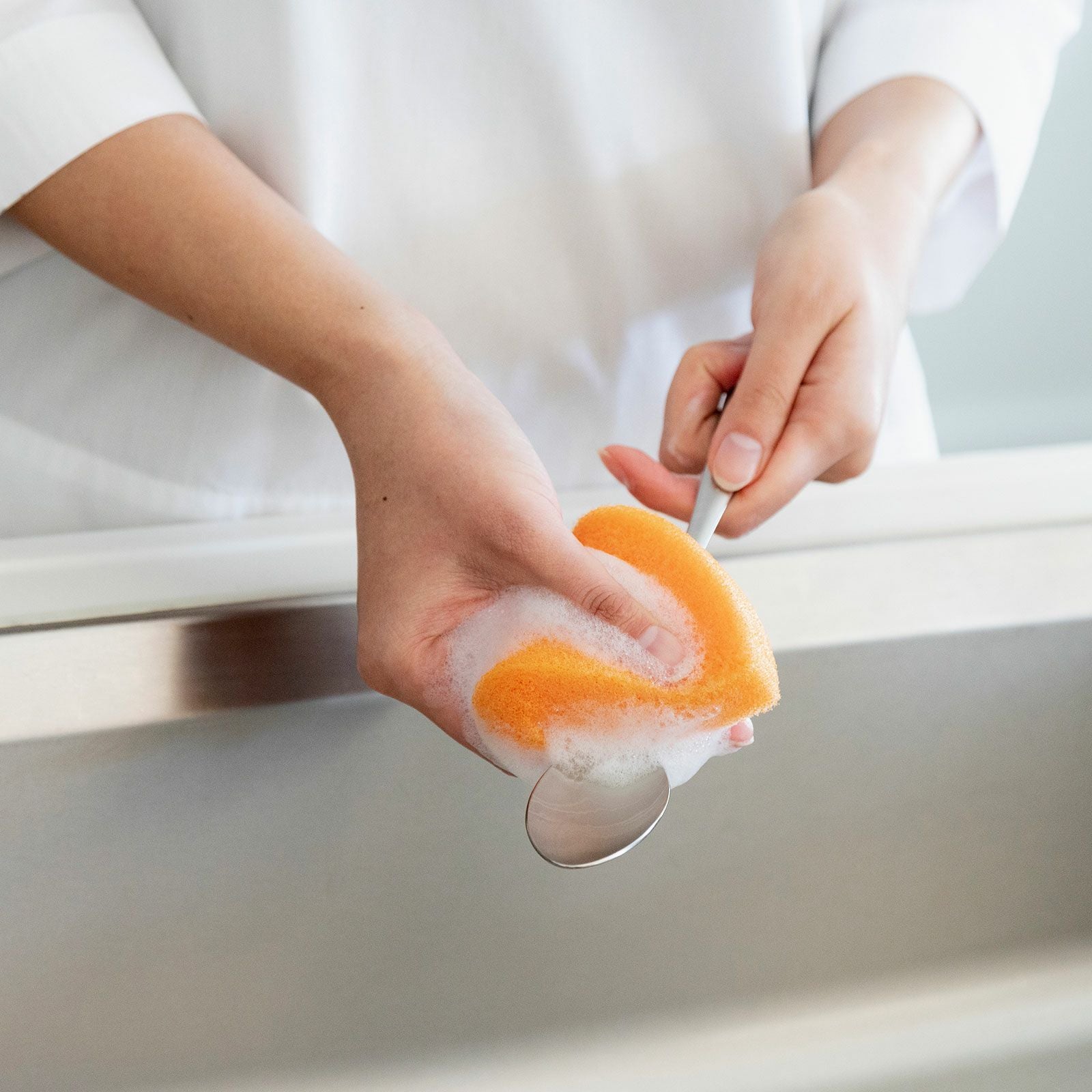 「銀イオン系抗菌剤」をスポンジ全体へ練り込むことで、高い抗菌効果とより柔らかい握り心地を実現しました。