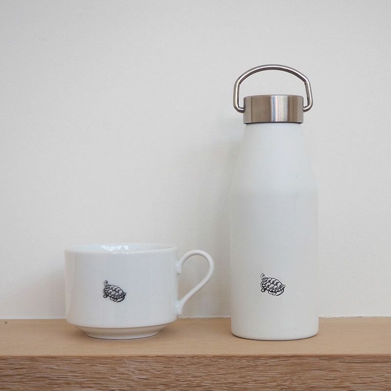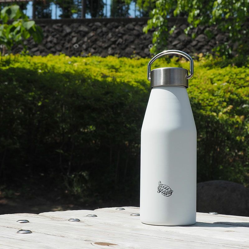 亀の子ブレンドを外でも美味しく飲んでいただこうと思い、保温できるボトルをご用意しました。およそカップ1杯分(250ml)の飲み物が入ります。