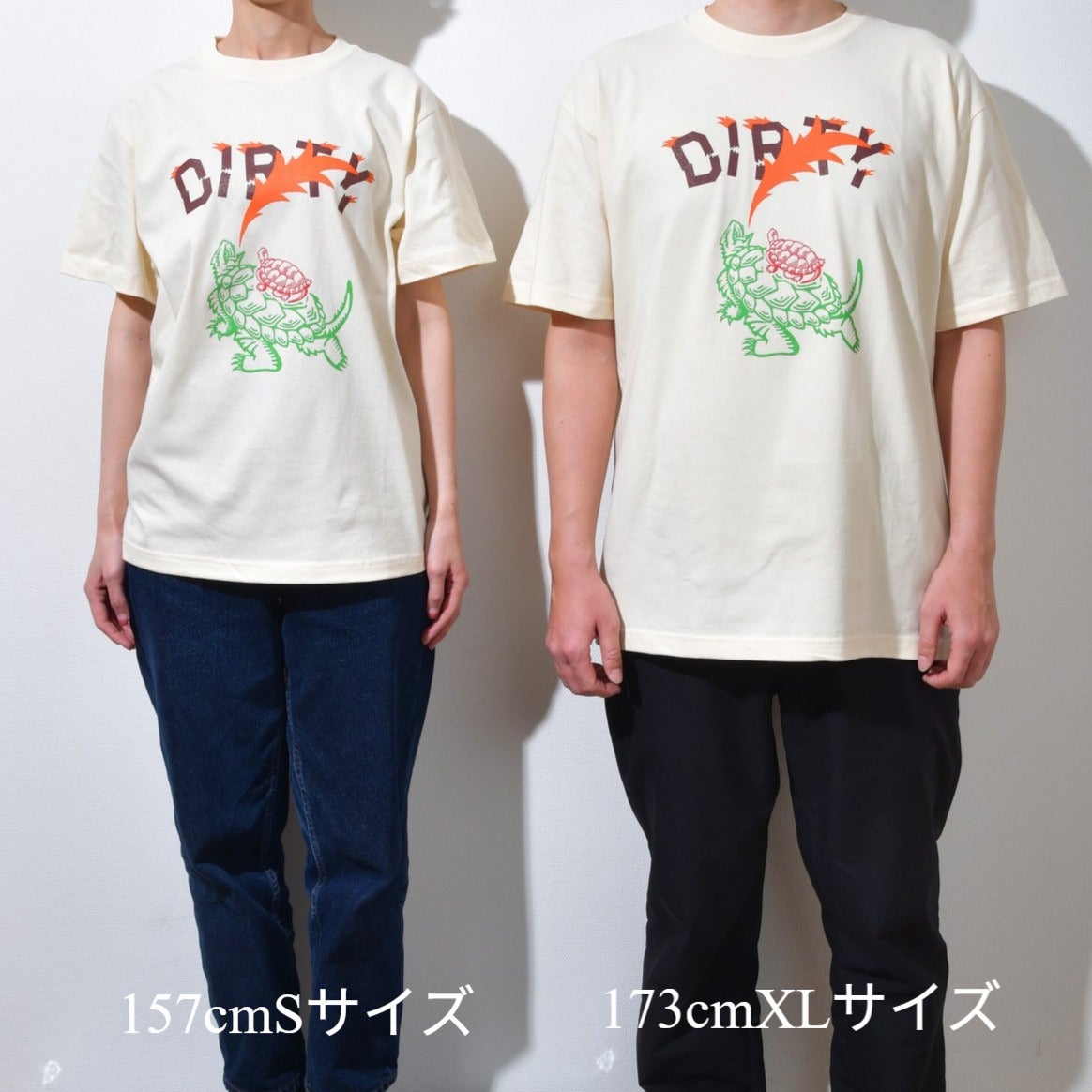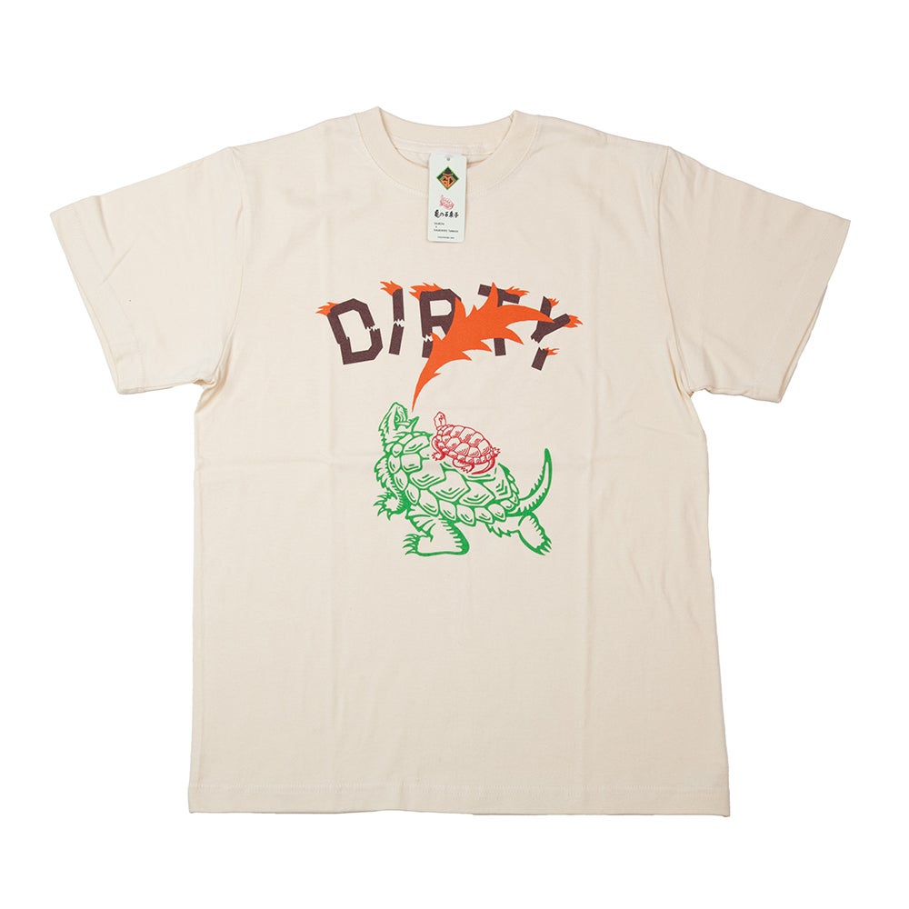 ガメラの上に亀の子束子のシンボルロゴである「亀」が乗り、共に「DIRTY」という文字を攻撃している力強いグラフィックが特徴です。