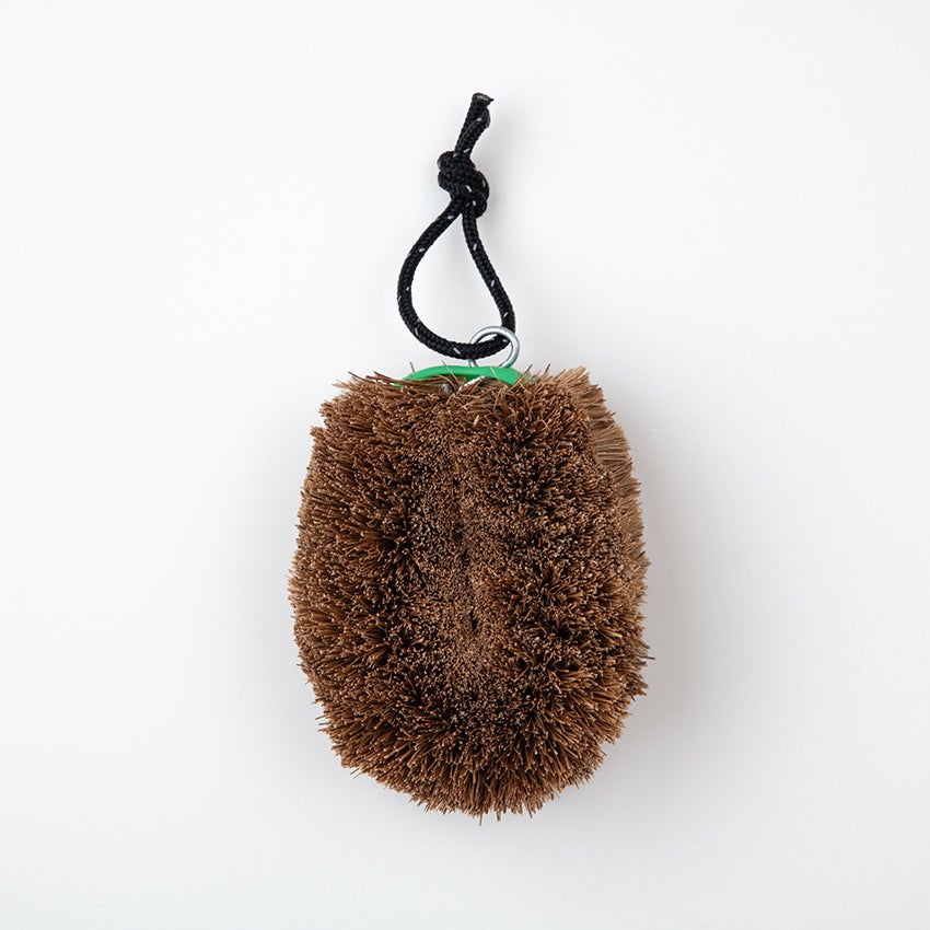 束子にシリコンバンドを巻いた、機能性あふれる「亀の子束子Obiガメラエディション」。