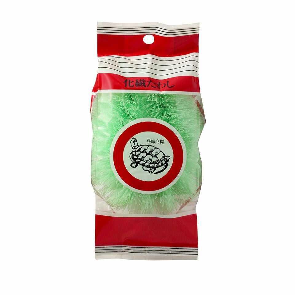 化学繊維を使用した亀の子型のたわし。ポリプロピレンを使用した1号サイズのたわし。自然素材のたわしよりも水切れがよく、丈夫で長持ち。衛生面の管理がしやすいので業務用として人気です。