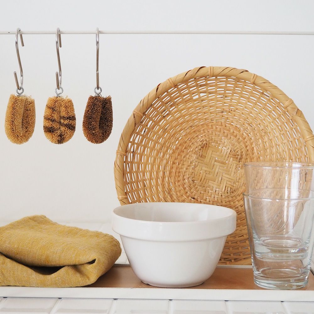 パームたわしの極小サイズ。亀の子束子と同じココナッツ繊維を使用した、縄をかけていないたわしです。