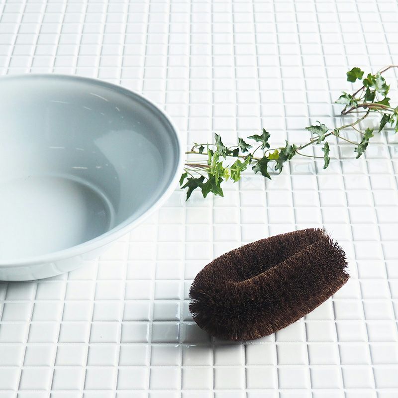 きめ細かくコシが強い繊維が特徴の棕櫚たわし、繊維が切れることは少なく、シャカシャカとやさしく洗うのが得意です。