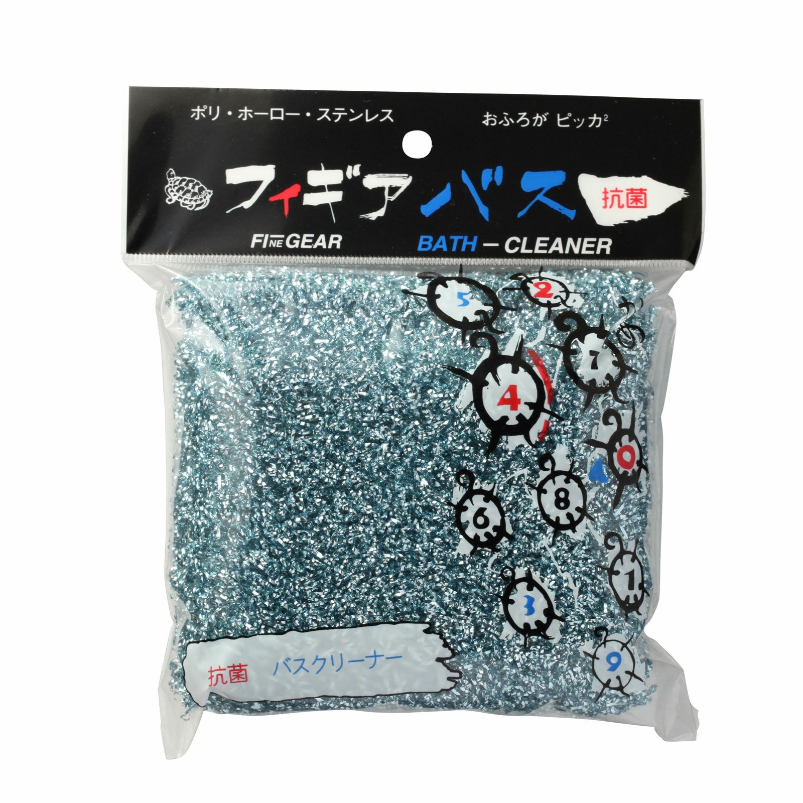 ポリエステルフィルムに高純度アルミ微粒子を真空蒸着したお風呂用スポンジ。