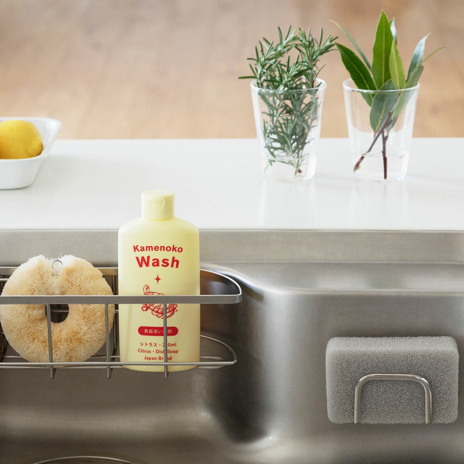 珍しいグレ一のスポンジは、ステンレスのシンクと相性抜群です。