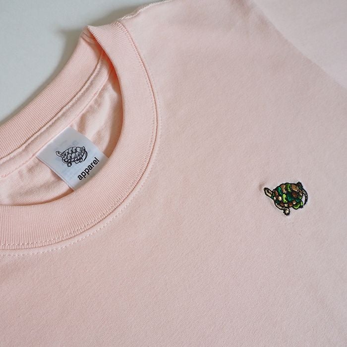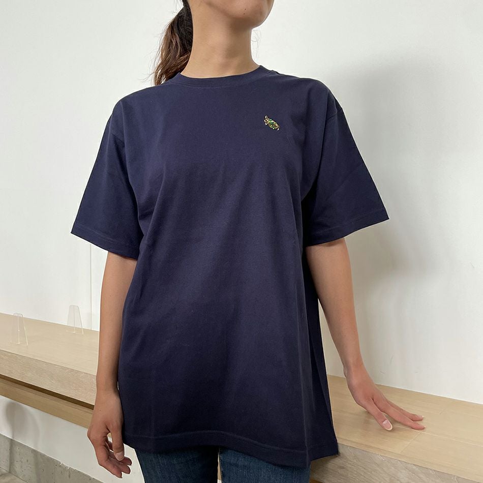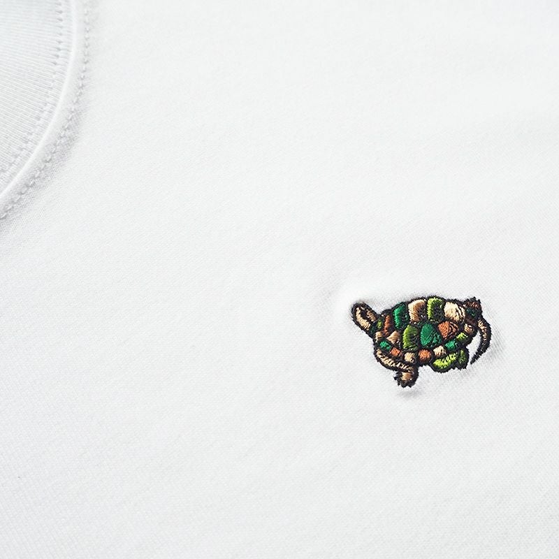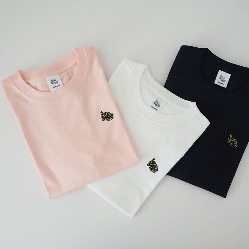 直営店で人気のTシャツに新デザインが登場しました。さりげなくカモ柄の亀を胸に刺繍した、シンプルなデザインで、普段着としても活用しやすい一枚。6.2オンスの生地を使用し、丈夫さを実現するために細部の縫製・仕立てにこだわったので、ホワイトでも透けにくく安心して着て頂けます。 首リブの強度を保つ「ダブルステッチ」や毛羽立ちを抑える「コーマ糸」の採用、洗濯縮みを軽減するために縫製前に「防縮加工」(水洗い・タンブル乾燥)を施したハイグレードモデルのTシャツです。 カラーは、ホワイト・ネイビー・ベビーピンク・シティグリーンの4色。 S~XLの4サイズ展開なので、好みのサイズ感で着こなして頂けます。